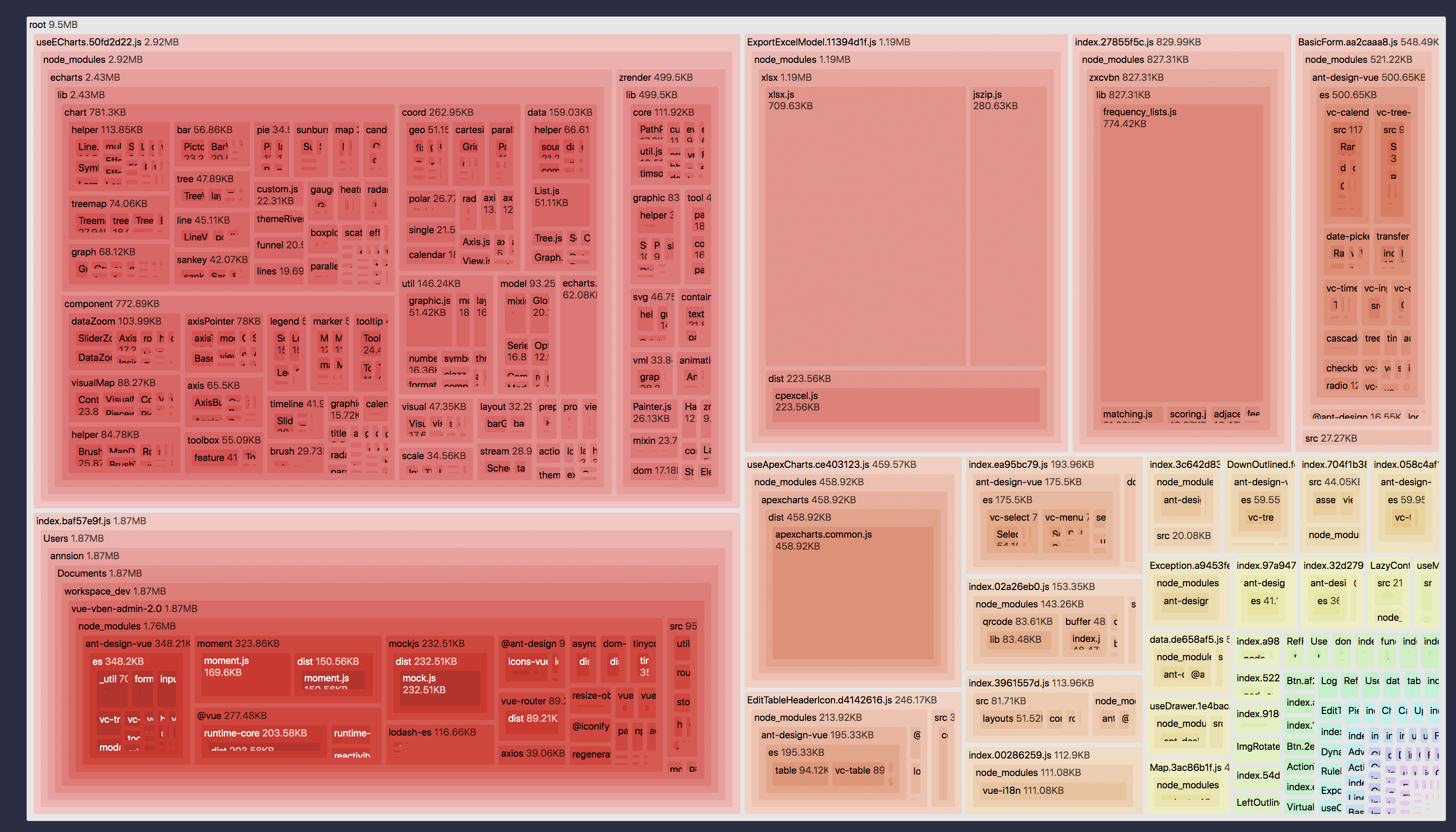 运行之后,在自动打开的页面可以看到具体的体积分布,以分析哪些依赖有问题。